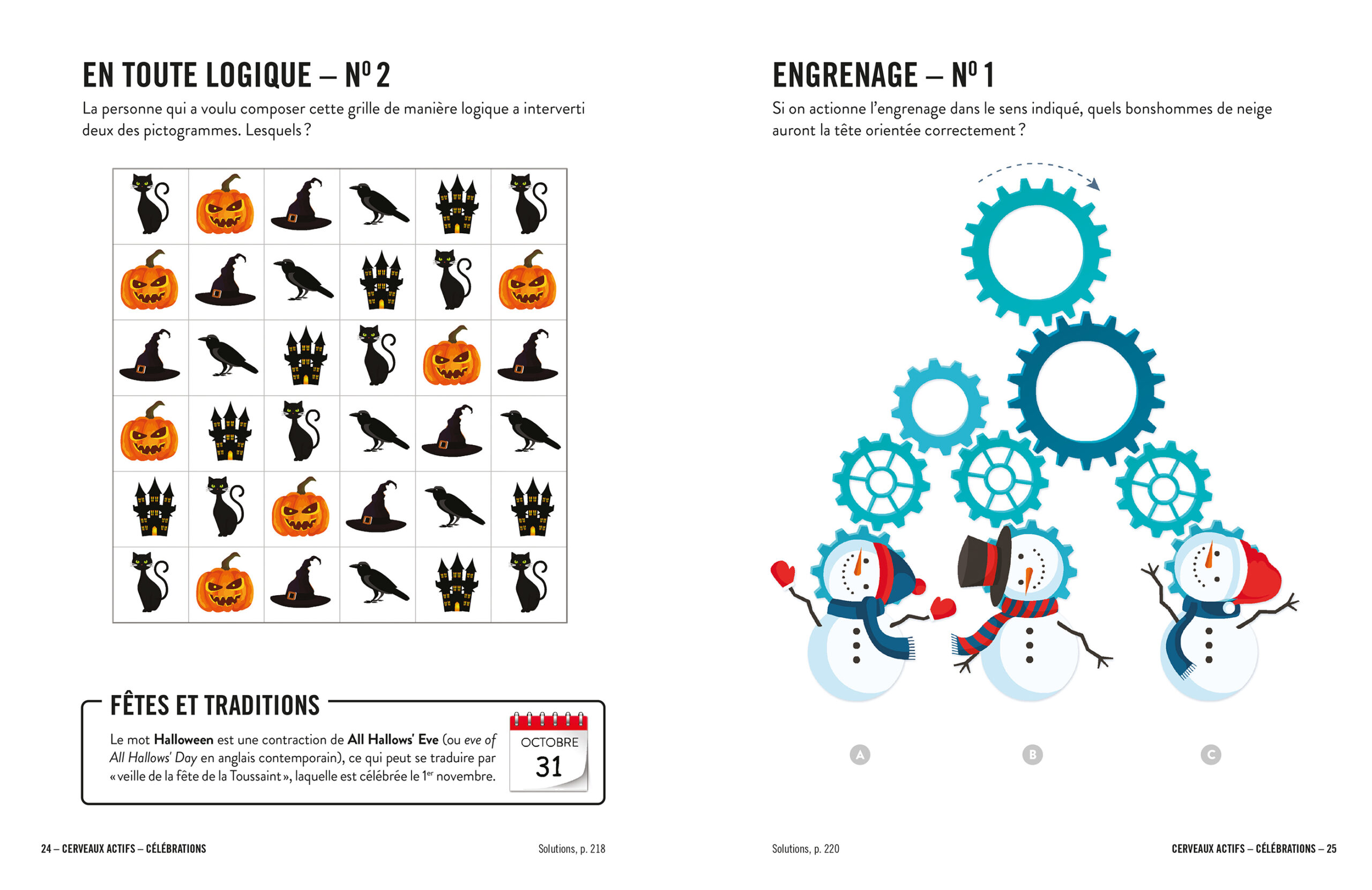 Dans Cerveaux actifs - Célébrations, vous êtes invité à mettre en action des habiletés cognitives dans plus de 200 jeux conçus pour vous divertir. Plusieurs de ces jeux, ainsi que des capsules d’information, ont pour thème les diverses festivités et occasions de célébrer : Nouvel An, Saint-Valentin, Halloween, mais également les fêtes et les traditions internationales qui ponctuent le calendrier.