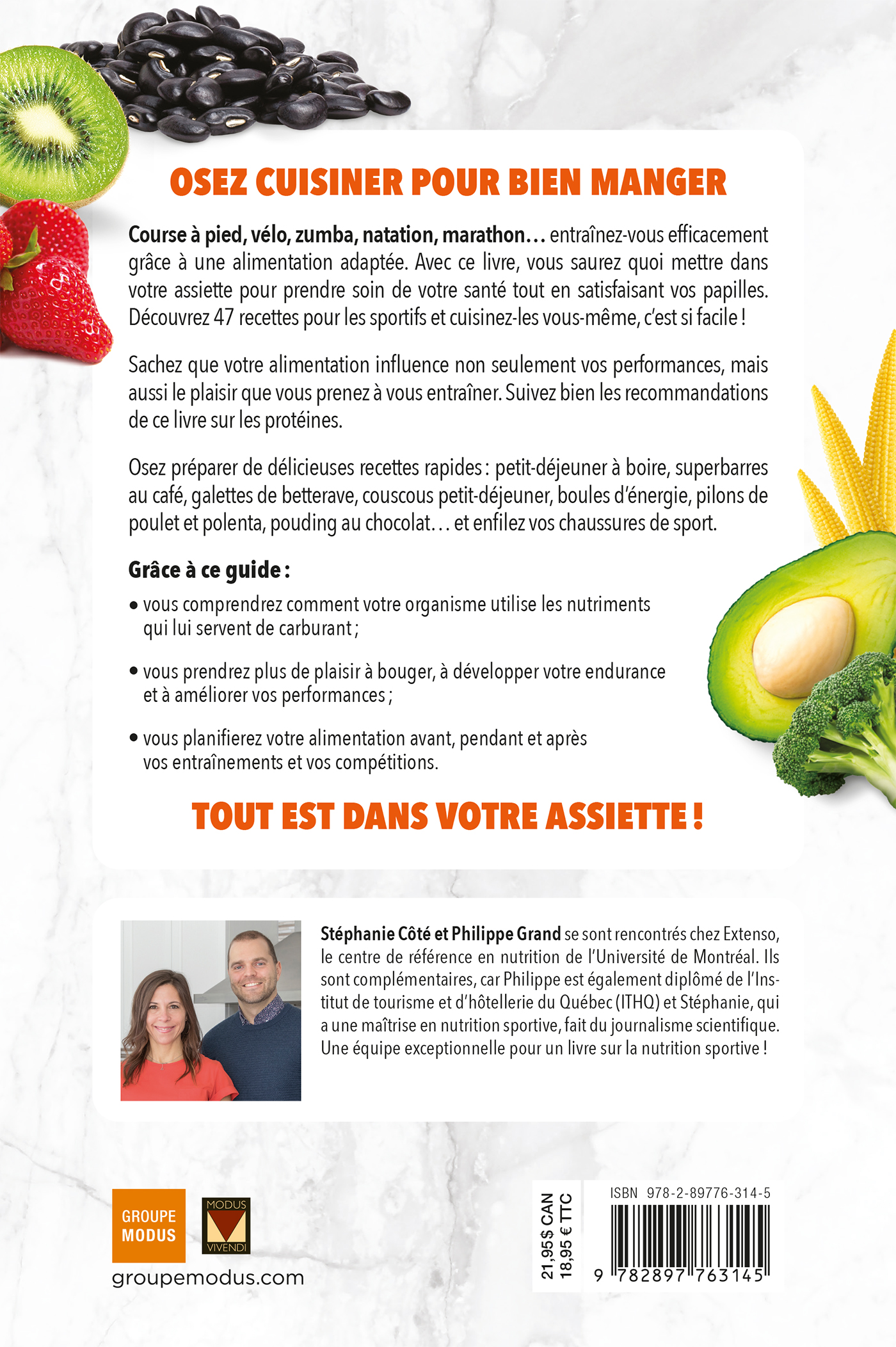 Quels que soient vos objectifs sportifs et vos motivations, que vous fassiez une heure de spinning trois fois par semaine ou que vous prépariez un ultramarathon, votre alimentation influence non seulement vos performances, mais aussi le plaisir que vous prenez à vous entraîner. Oser cuisiner – Nutrition sportive vous permet de comprendre où et comment votre corps puise l’énergie dont il a besoin, et vous fournit des informations-clés concernant la nutrition sportive, dont des recommandations aussi bien générales que spécifiques (avant, pendant et après l’effort).