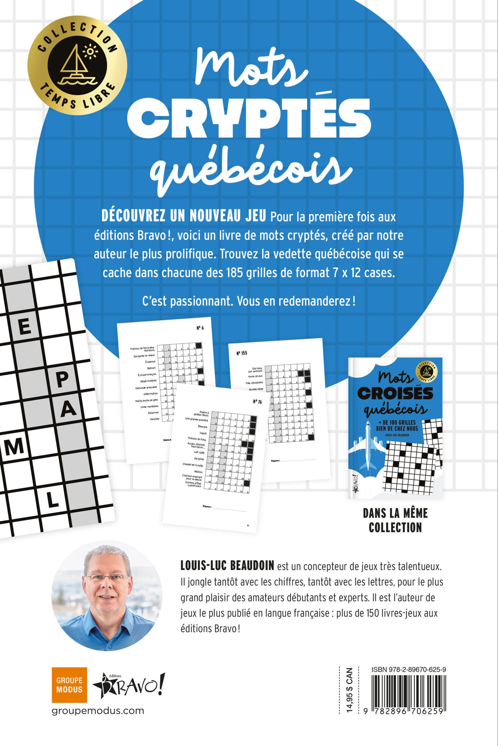 Publié pour la première fois aux éditions Bravo!, ce livre-jeu de mots cryptés a été créé par notre auteur le plus prolifique. Dans chacune des 185 grilles de format 7 x 12 cases, une vedette québécoise se cache!