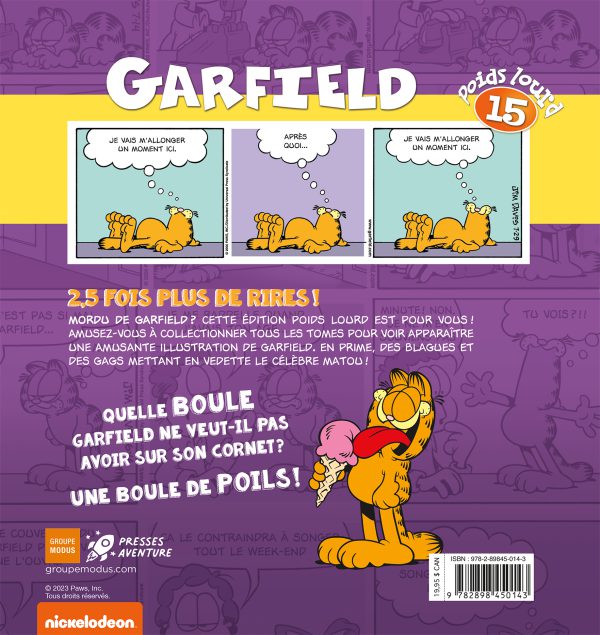 Mordu de Garfield ? Cette édition Poids lourd est pour vous ! Amusez-vous à collectionner tous les tomes pour voir apparaître une amusante illustration de Garfield. En prime, des blagues et des gags mettant en vedette le célèbre matou !