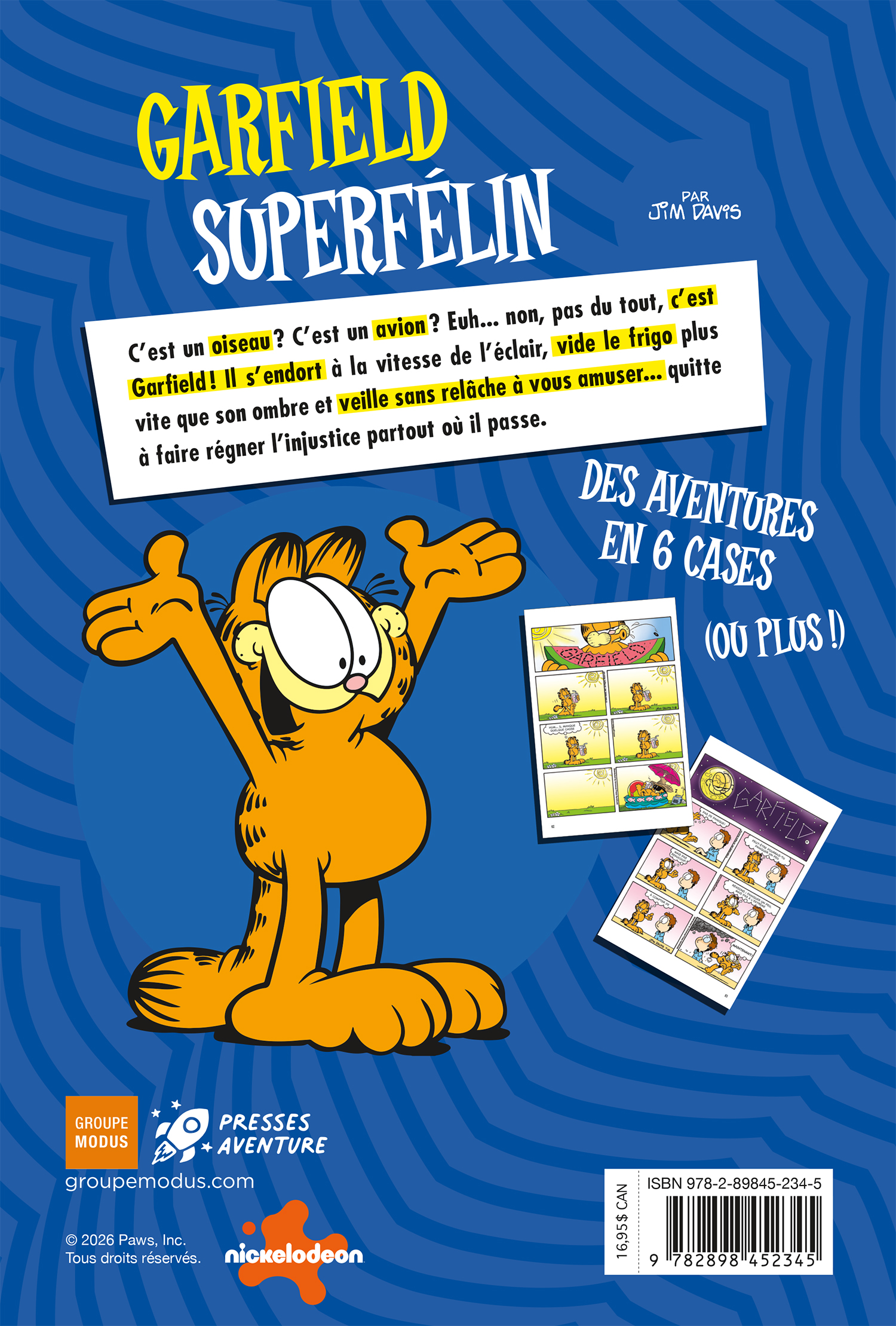 C’est un oiseau? C’est un avion? Euh... non, pas du tout, c’est Garfield ! Il s’endort à la vitesse de l’éclair, vide le frigo plus vite que son ombre et veille sans relâche à vous amuser... quitte à faire régner l’injustice partout où il passe.