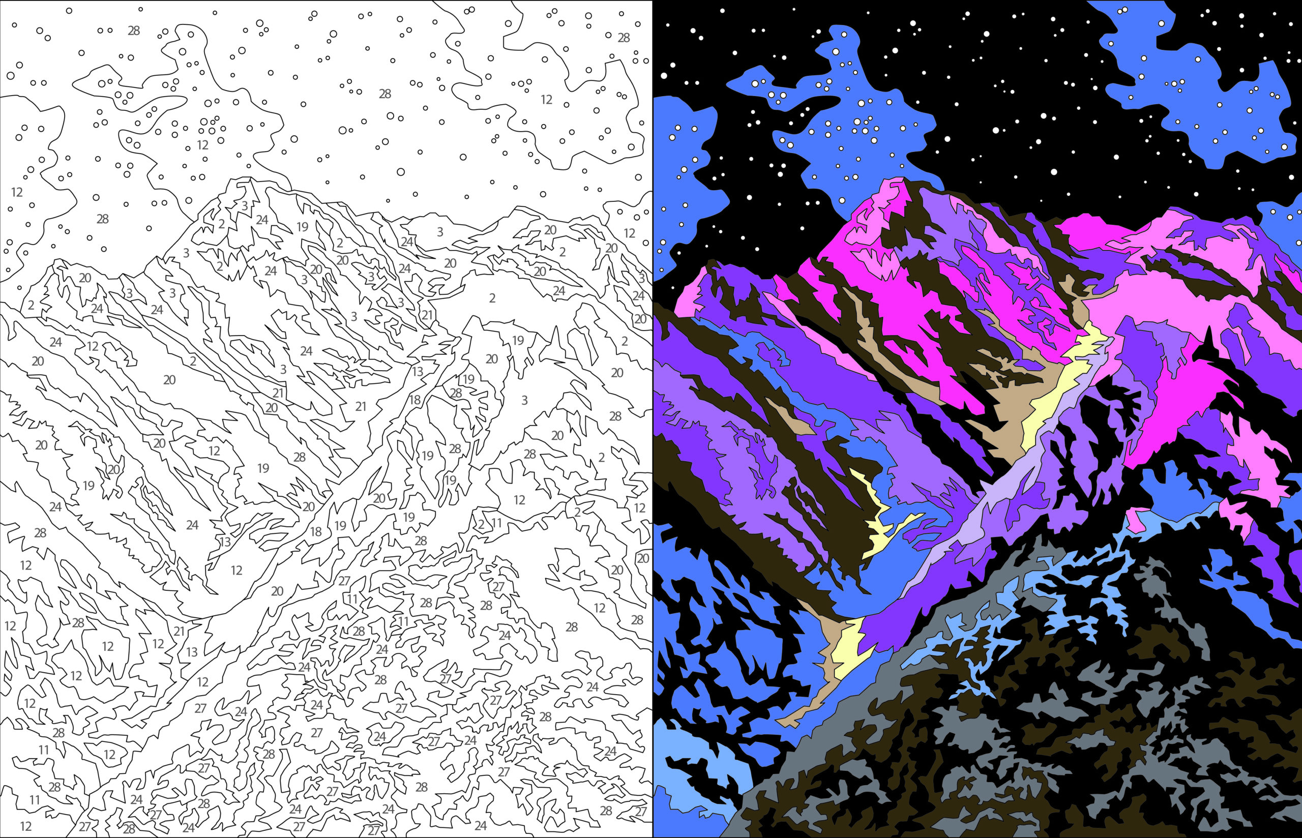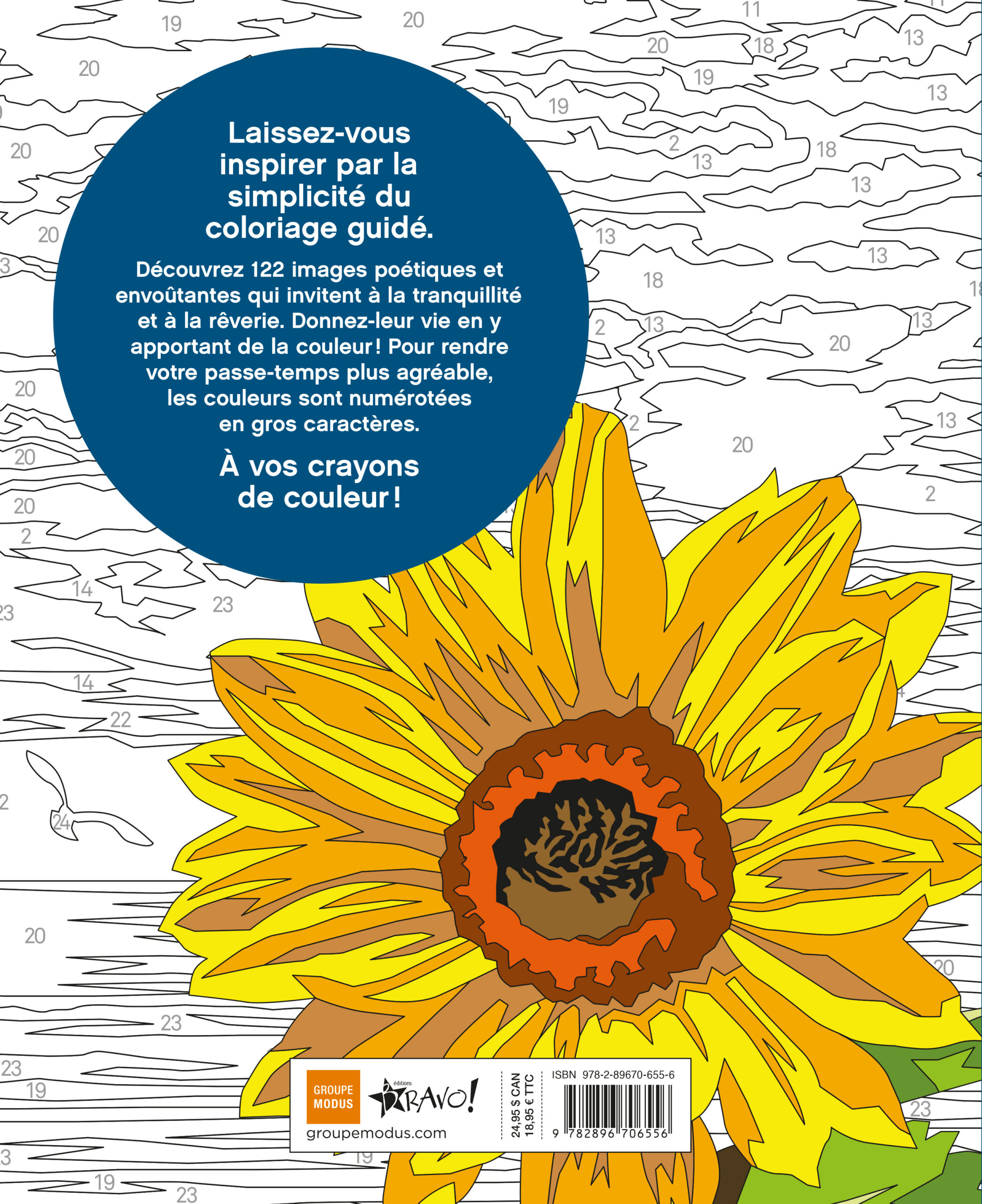 Découvrez 122 images poétiques et envoûtantes qui invitent à la tranquillité et à la rêverie. Pour rendre le coloriage plus agréable, les couleurs sont numérotées en gros caractères.