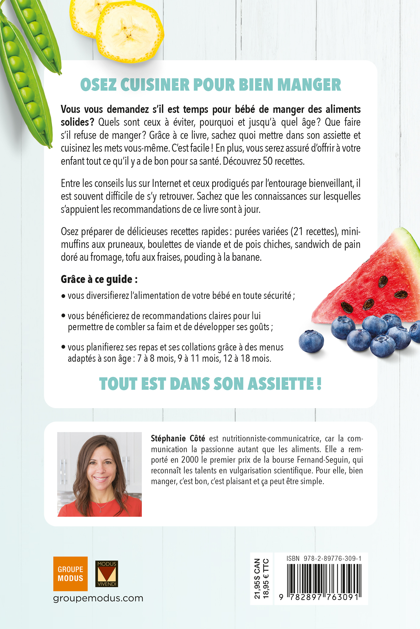 Les connaissances et les recommandations concernant l’alimentation des bébés évoluent sans cesse. Entre les conseils trouvés sur Internet, ceux de votre mère, de votre belle-mère, de vos amies et même ceux de votre coiffeuse, il peut vous paraître difficile de discerner les bonnes informations. C’est la raison d’être de cet ouvrage. Oser cuisiner – Mon bébé vous explique quels sont les besoins particuliers des bébés en matière d’alimentation, et comment y répondre.