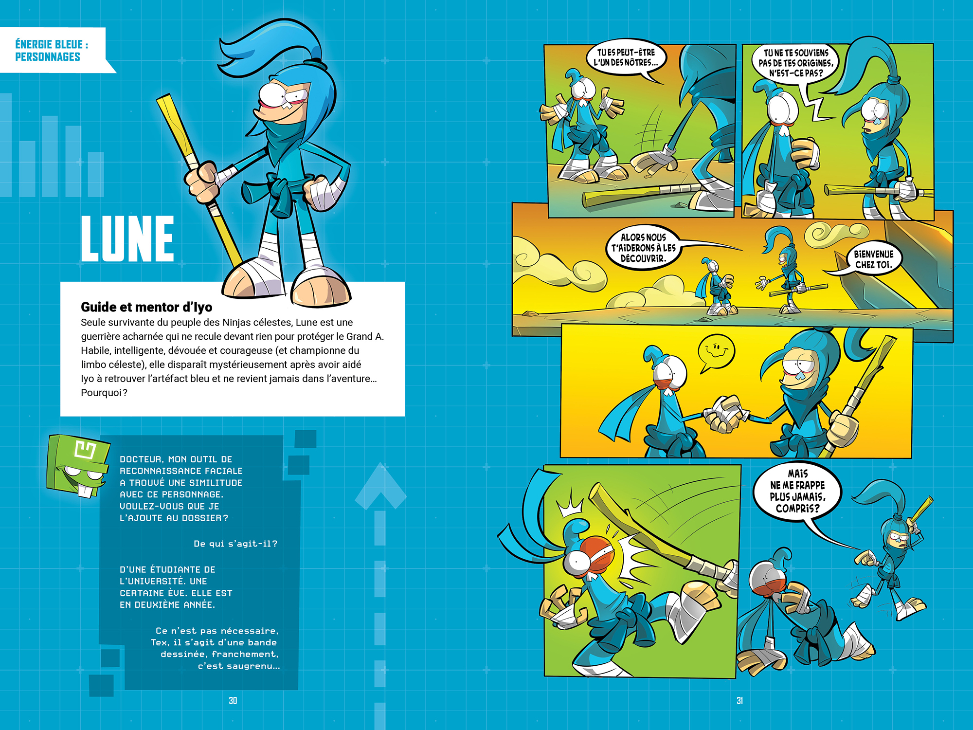 En plus, le livre contient une bande dessinée inédite consacrée à Lune, la chef des Ninjas célestes disparue après le premier tome.